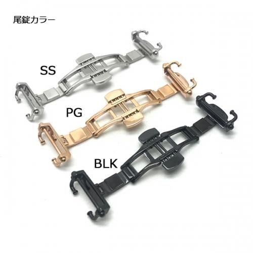 スペック46mm 時計用 ストラップ 牛革(リザード型押し) ブラック 中央の左右をつまむことで外れます。 StainlessSteel(SS),Pink Gold(PG),Black(BLK)Manuale Thin 46mm