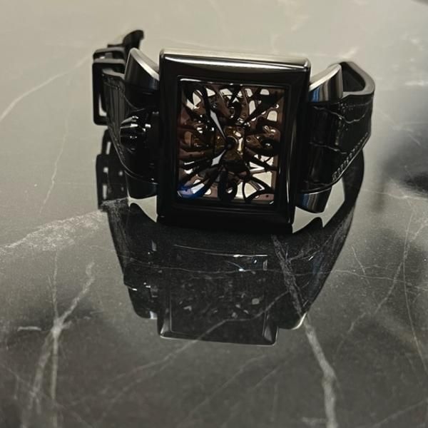 時,分手巻き機械式日差 -10 〜 +20秒 ブラックPVD[ステンレススチール]ミネラルガラス日常生活防水 レザー(表)/ラバー(裏)